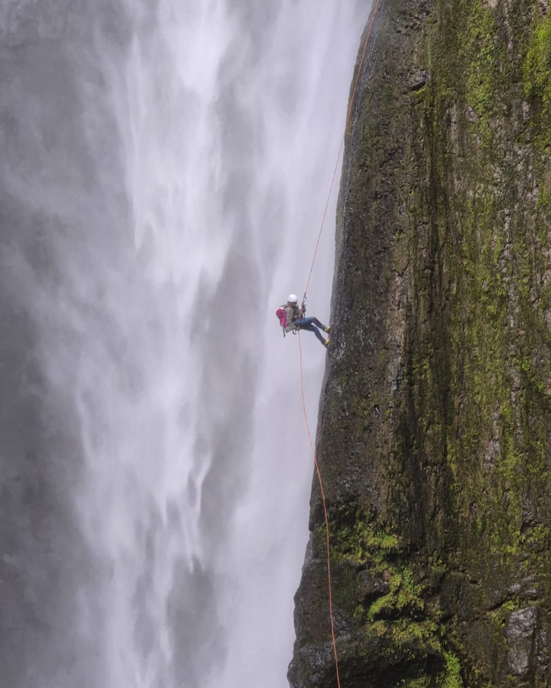 💬@kordas_ropes: "Featuring a vast landscape&a magnificent waterfall,this photo amazed us with its dimensions,the contrast of lights,and the beautiful colors of the rainbow forming just above the canyoner. A landscape that conveys passion&the beauty of canyoning."
