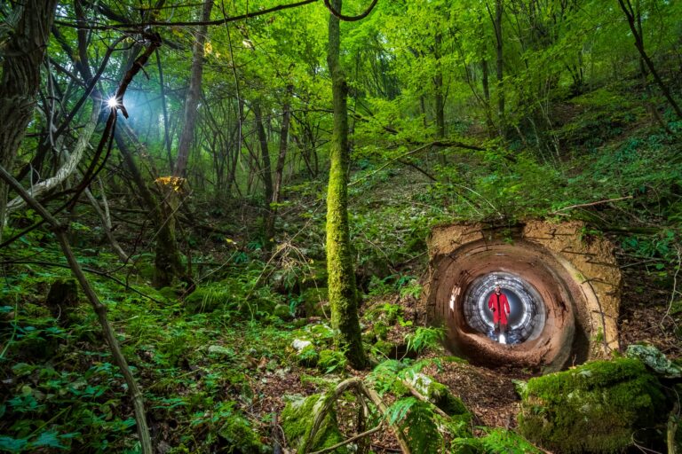 💬 "Magical shot. This image stands out for its narrative strength and thoughtful juxtaposition of environments. The photograph immediately engages through contrast, both visual and conceptual. The lush, verdant forest fills the frame with layers of green, organic texture, and natural disorder, while the circular tunnel introduces a strong geometric counterpoint. This collision of nature and human-made structure becomes the core of the image’s storytelling. The placement of the subject is particularly effective. Centered within the tunnel’s opening, the figure in red acts as a visual anchor and focal point. The color choice is striking yet controlled; the red coat cuts cleanly through the dominant greens without feeling artificial or overly dramatic. It guides the viewer’s eye directly into the scene and reinforces the sense of emergence, transition, or passage. Light is handled with intention. The soft, diffused forest light creates an immersive, almost ethereal atmosphere, while the tunnel interior provides a contained, directional glow that frames the subject beautifully. The subtle starburst of light filtering through the trees on the left adds dimensional depth and balances the heavier visual weight of the tunnel on the right.