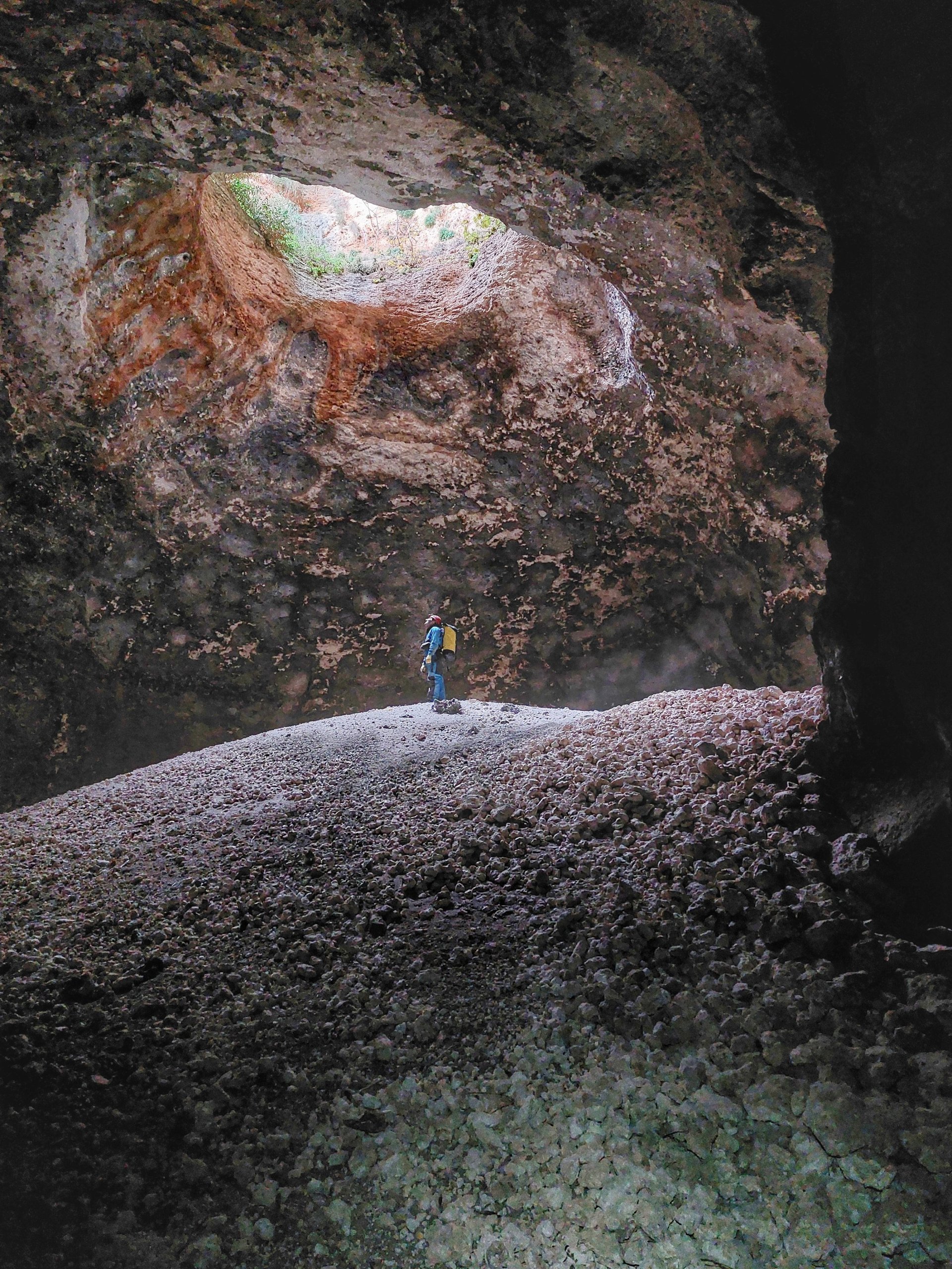 💬 "Story teller’s delight. We loved this shot for the handful of potential stories it tells, geologically, photographically, and from an adventurer’s perspective. The “roof’s" coloring and the ground’s rock terrain give the image an intergalactic look and feel that confuses the mind while inviting exploration. One is immediately drawn to examine it more closely in an attempt to understand it. The subject’s position adds scale and perspective, and his gaze into the opening adds a sense of curiosity not only about the cause of the environment but also its meaning. And while possible imaging criticisms can be made about definition and lighting, the overall image demands attention and awe."